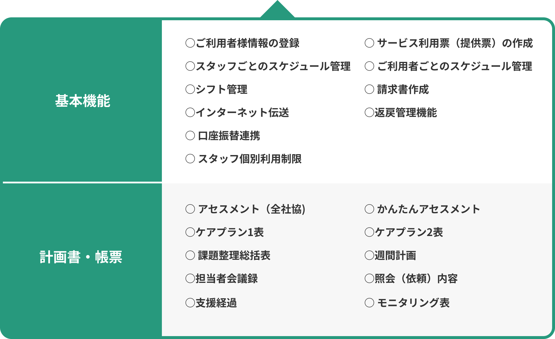 ナーシングネットプラスワンの対応サービス一覧です。介護保険サービスはもちろん、障がい者総合支援、施設サービス、共生型サービス、医療保険など、幅広いサービスに対応しております。シンプルかつ充実の機能、各種帳票類も取り揃えております。万が一、ご希望のサービスの記載が無い場合はお問合せ下さい。