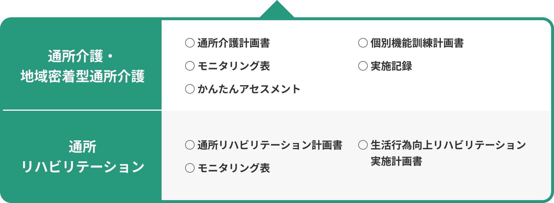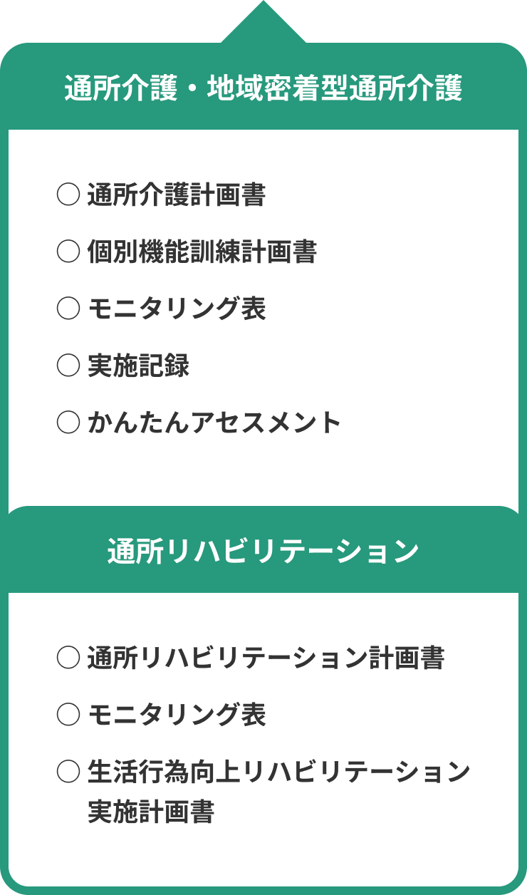 個別機能訓練加算の取得やLIFE加算の項目に幅広く対応。